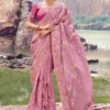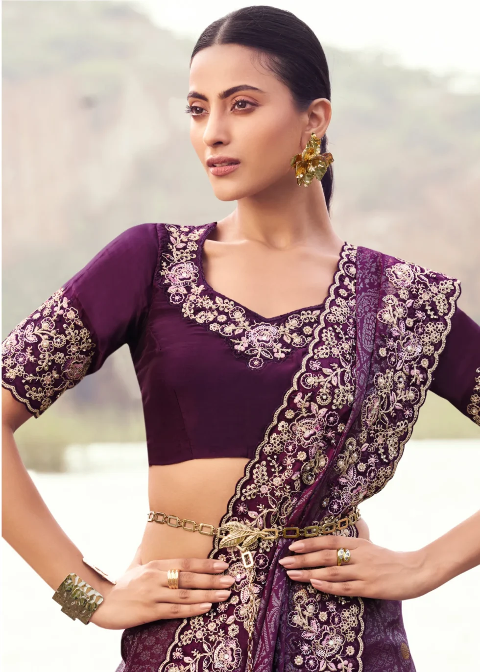 Amethyst Aura: A violet embroidered saree