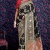 A paithani saree in Mhalsa silk fabric, with mango zari motif decoration. The deep black saree comes with a contrast red border and blouse piece.