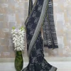 This is a black cotton saree with white arithmatic symbols print and a small decorative border. A preferred office-wear/casual party-wear.