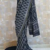 This is a deep blue cotton saree with concentric squares print adorned with a small border. See pictures for blouse piece. A preferred office-wear/casual party-wear.