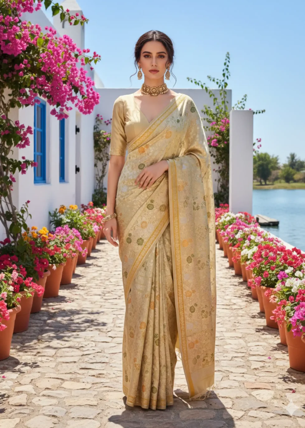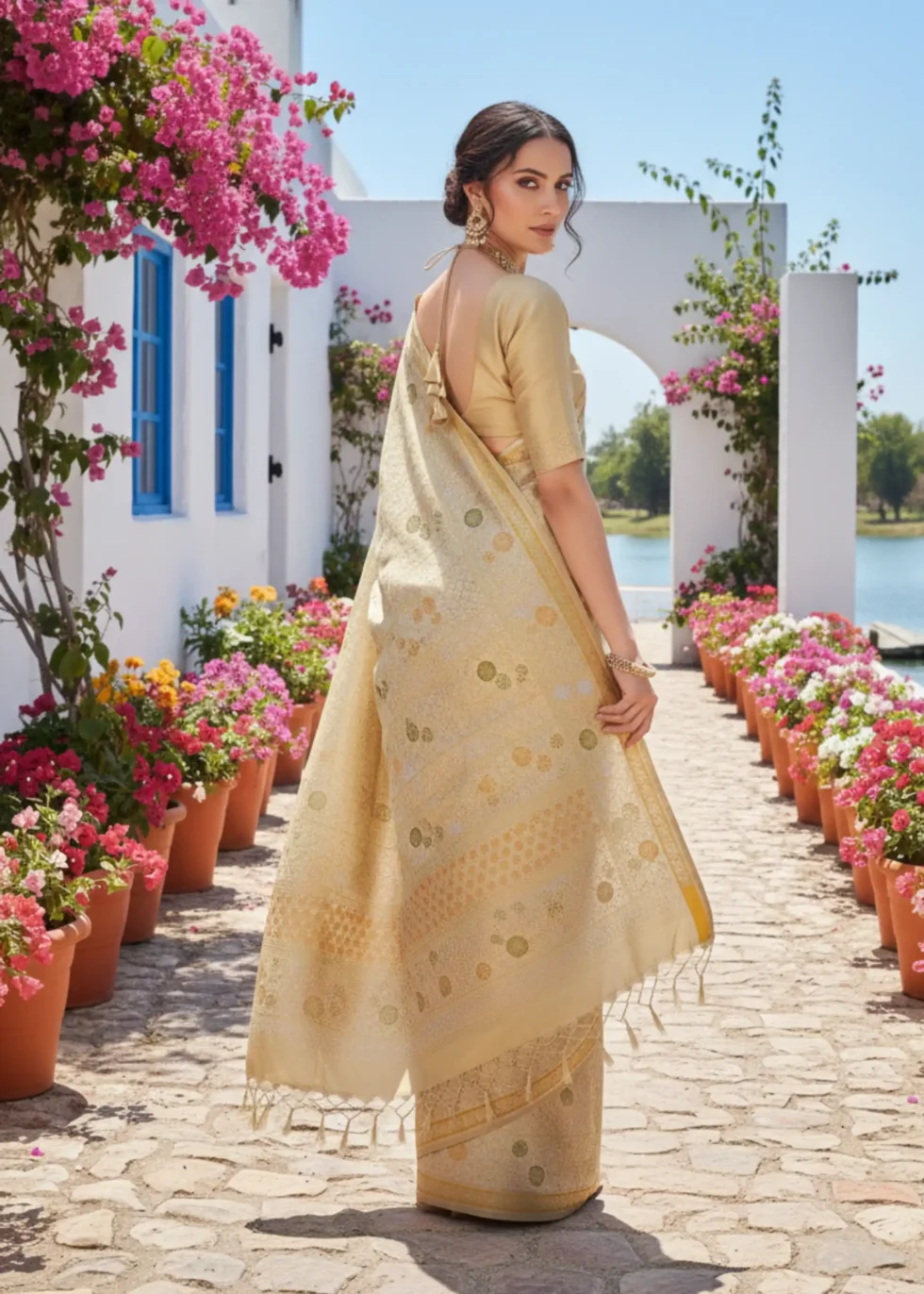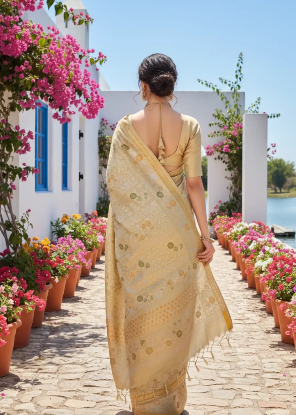 Gold Glam: Pastel gold Mashru silk Banarasi saree