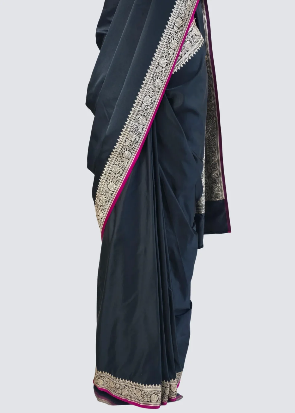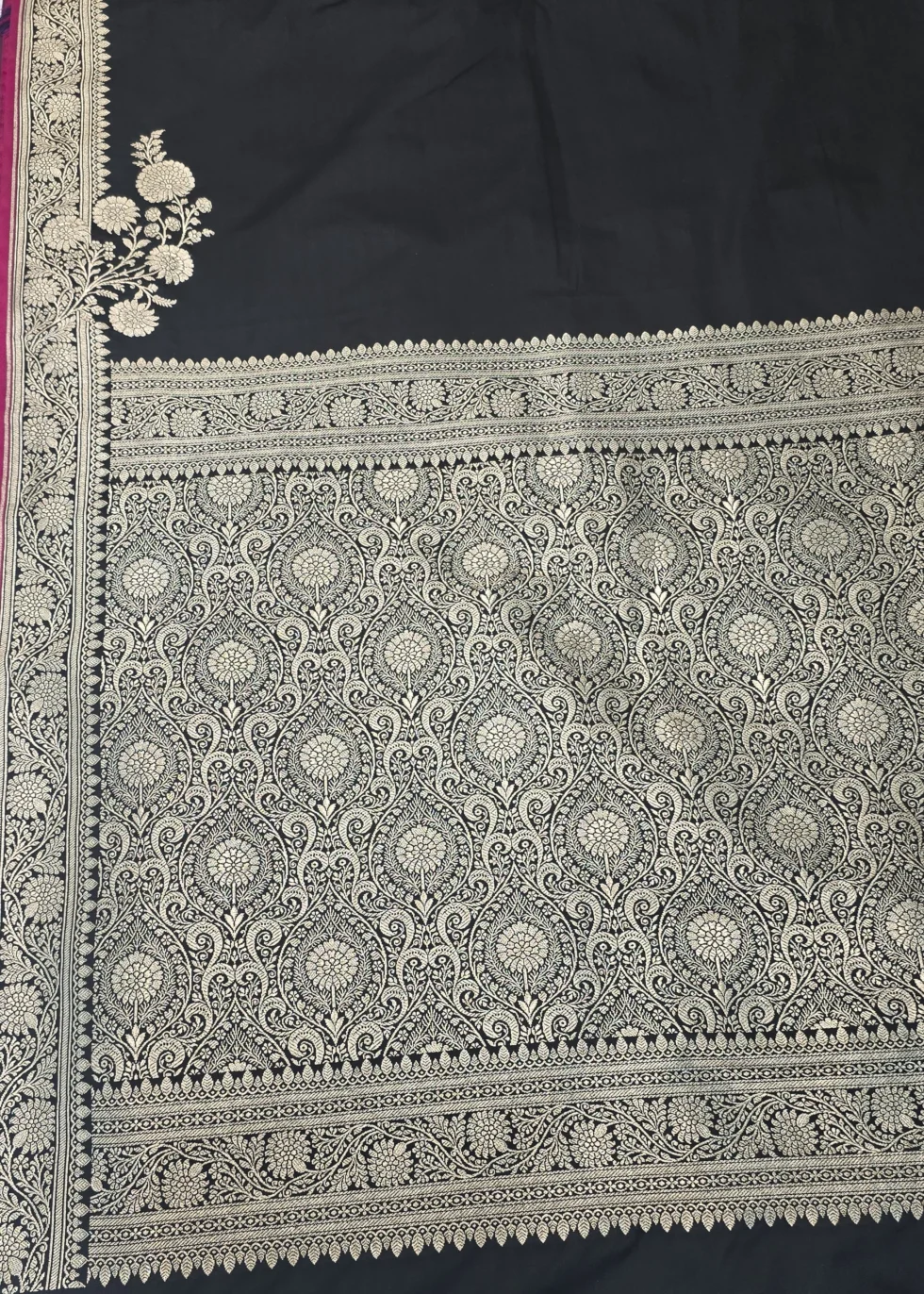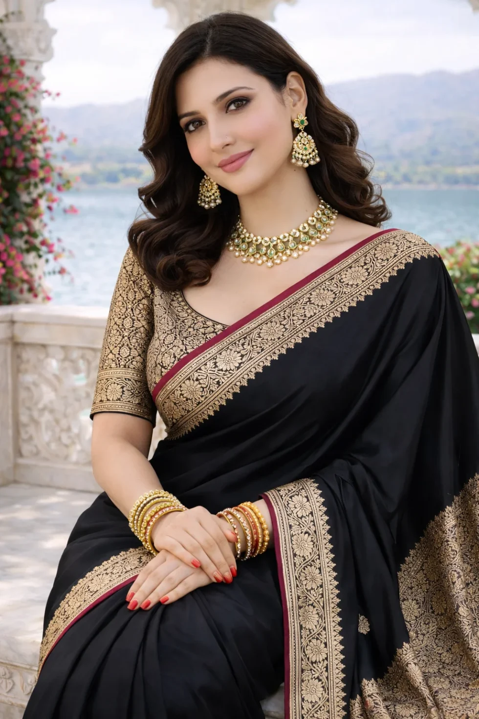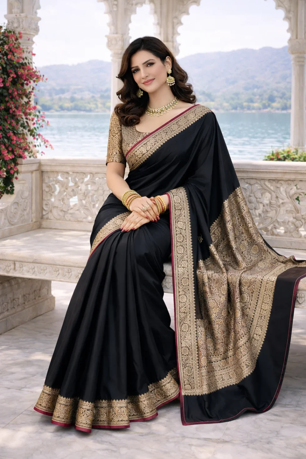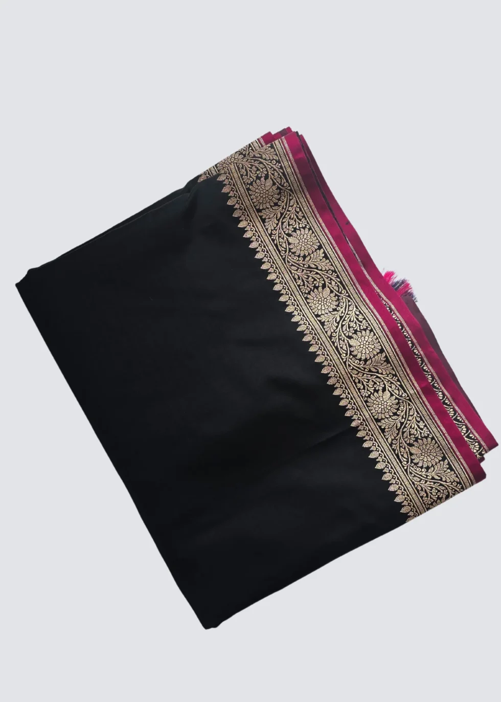 Simple yet scintillating black Banarasi in soft Mashru silk